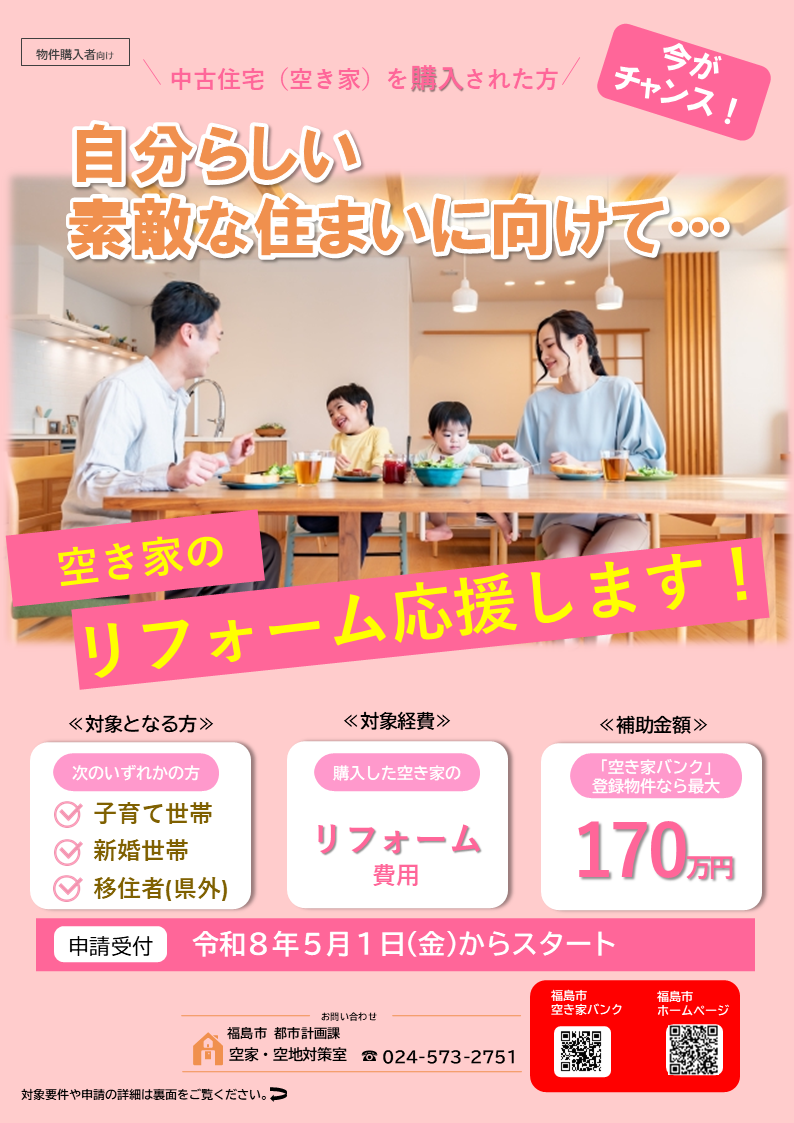 ※補助額や対象作業などの詳細につきましては、チラシを参照もしくは都市計画課(024-573-2751)までお問い合わせください。